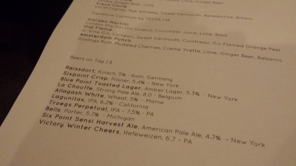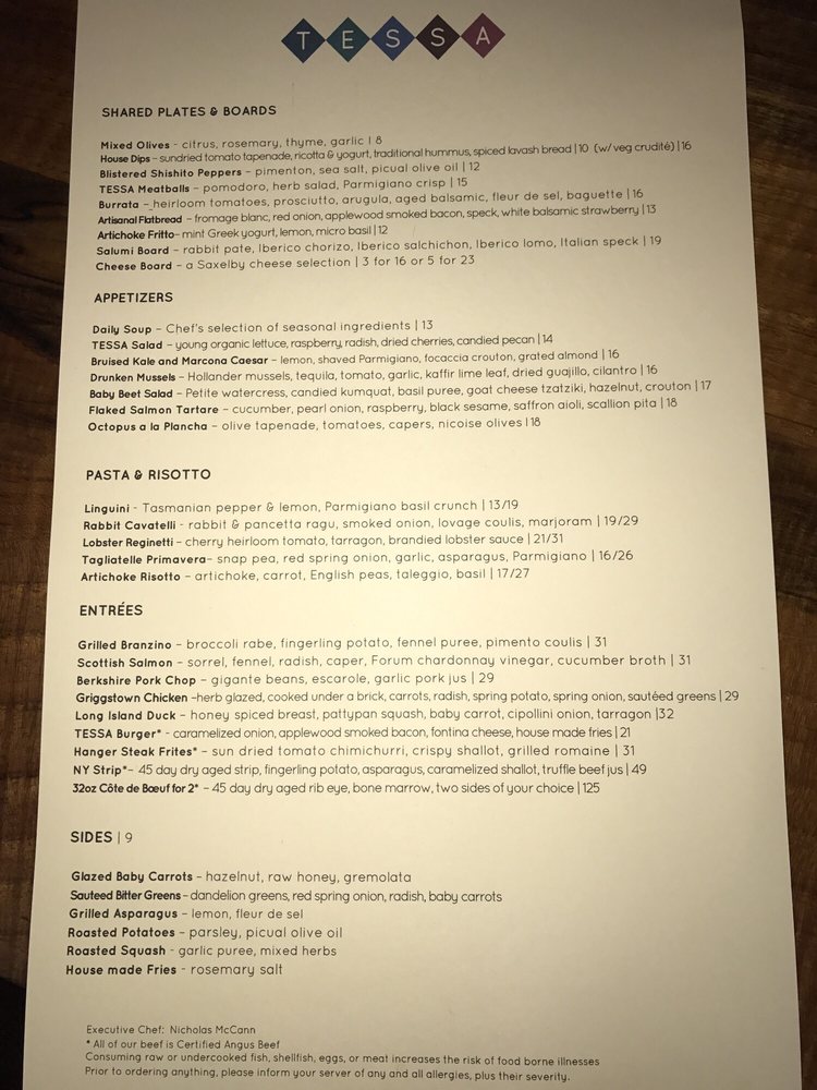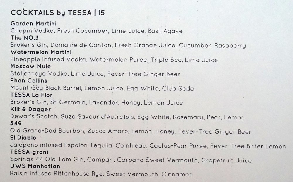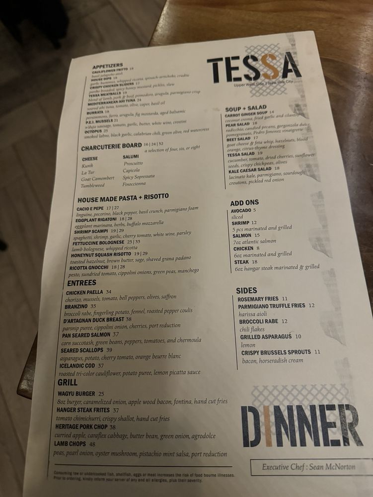 Highlights include the flavorful Cauliflower Fritto, the refreshing Cucumber Gazpacho, and the indulgent Tuna Tartare. Customers rave about the attentive staff and the relaxing atmosphere. So, whether you're stopping by for happy hour specials or a full dinner, Tessa promises to deliver a memorable dining experience like no other in the heart of New York City.